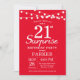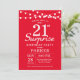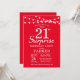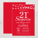 Überraschung 21. Geburtstag Einladung mit String Lights. Roter Hintergrund. 13. 15. 16. 18. 20. 21. 30. 40. 50. 60. 70. 80. 90. 100. Jedes Alter. Für weitere Anpassungen klicken Sie bitte auf die Schaltfläche "Anpassen" und verwenden Sie unser Designwerkzeug, um diese Vorlage zu ändern.