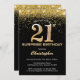 Überraschung 21. Geburtstag Schwarz und Gold Glitz Einladung