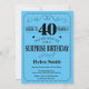 Überraschung 40. Geburtstag Einladung Schwarz und Blau Typografie. Schwarz und Blau Hintergrund. Erwachsener zum Geburtstag. Männer oder Frauen zum Geburtstag. Kinder Junge oder Mädchen Lady Teen Teenage Bday einladen. 13. 15. 16. 18. 20. 21. 30. 40. 50. 60. 70. 80. 90. Jedes Alter. Für weitere Anpassungen klicken Sie bitte auf die Schaltfläche "Anpassen" und verwenden Sie unser Designwerkzeug, um diese Vorlage zu ändern.