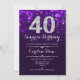 Überraschung 40. Geburtstag Einladung. Elegantes lila Design mit Imitaten Glitzer Silber. Erwachsener Geburtstag. Enthält Diamanten, Bokeh-Leuchten und Skript-Schriftart. Männer oder Frauen laden ein. Ideal für eine stilvolle Geburtstagsfeier. Nachricht, wenn Sie weitere Anpassungen benötigen.
