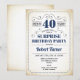 Überraschung 40. Geburtstagseinladung für Frauen. Elegantes Retro-cremefarbenes Weiß und Marinebau. Features typografischer Script-Schriftart. Bis 40 Jahre! Kann für jedes Alter angepasst werden. Ideal für ein stilvolles Erwachsenentreffen.