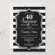 Überraschung 40. Geburtstag Einladung. Klassisches Design mit schwarz-weiß Streifen, Script-Schriftart und Glitzer Silber. Ideal für eine elegante Geburtstagsfeier. Kann personalisiert sein, jedes Alter zu zeigen. Nachricht, wenn Sie weitere Anpassungen benötigen.