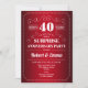 Überraschung 40-jähriges Jubiläum Einladung. Einfaches Retro-Design in rubinrot-weiß. Der Schriftart ist stilvoll und typografisch. Bis 40 Jahre! Ideal für eine elegante Feier. Kann für jedes Jahr personalisiert werden.