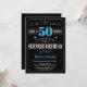 Überraschung 50. Geburtstag Einladung Blau und schwarze Typografie. Tafel. Schwarz-Weiß-Hintergrund Erwachsener Geburtstag. Männer oder Frauen zum Geburtstag. Kinder Junge oder Mädchen Lady Teenage Teenage Bday Einladen. 13. 15. 16. 18. 20. 21. 30. 40. 50. 60. 70. 80. 90. 100. Jedes Alter.