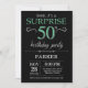 Überraschung 50. Geburtstag Einladung mit Schwarz und Grün Glitzer Hintergrund. Tafel. Erwachsener zum Geburtstag. Männer oder Frauen laden ein. Jedes Alter. Für weitere Anpassungen klicken Sie bitte auf die Schaltfläche "Anpassen" und verwenden Sie unser Designwerkzeug, um diese Vorlage zu ändern.