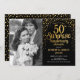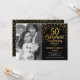 Überraschung 50. Hochzeit Jahrestag Einladung mit Foto. Elegantes Design in Schwarz mit Imitaten Gold Script Schriftart und Konfetti. Melde mich, wenn du ein benutzerdefiniertes Jahr brauchst.