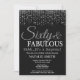 Überraschung 60. Geburtstag Einladung. 60 und fabelhaft. Schwarz und Silber. Silberner Glitzer.Erwachsene Geburtstagsparty. Für Männer oder Frauen.