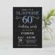 Überraschung 60. Geburtstag Einladung mit Schwarz und Blau Glitzer Hintergrund. Tafel. Erwachsener zum Geburtstag. Männer oder Frauen laden ein. Jedes Alter. Für weitere Anpassungen klicken Sie bitte auf die Schaltfläche "Anpassen" und verwenden Sie unser Designwerkzeug, um diese Vorlage zu ändern.