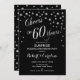 Überraschung 60. Hochzeitstag Einladung. Elegantes Design in Schwarz und Imitat Glitzer Silber mit Konfetti und Skript-Schriftart. Feiert bis 60 Jahre! Ideal für ein stilvolles Party. Melde mich, wenn du ein benutzerdefiniertes Jahr brauchst.