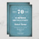 Überraschung 70. Geburtstagsfeier Einladung für Damen und Herren. Elegante Einladungskarte in hellblau mit Retro-Typografie-Script-Schriftart. Feiert bis 70 Jahre! Kann für jedes Alter angepasst werden. Ideal für ein Meilenstein Erwachsenenfeiern.