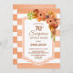 Apricot Imitate Glitzer gestreift Blumenüberraschung 70. Geburtstag Abendessen Party Einladung. Das Ehrenalter kann mit Ausnahme des 18. Lebensjahres im 80er in Anzug geändert werden, um die grammatikalische Korrektheit zu gewährleisten.