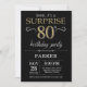 Überraschung 80. Geburtstag Einladung mit Schwarz und Gold Glitzer Hintergrund. Tafel. Erwachsener Geburtstag. Männer oder Frauen laden ein. Jedes Alter.