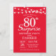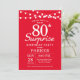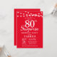 Überraschung 80. Geburtstag Einladung mit String Lights. Roter Hintergrund. 13. 15. 16. 18. 20. 21. 30. 40. 50. 60. 70. 80. 90. 100. Jedes Alter. Für weitere Anpassungen klicken Sie bitte auf die Schaltfläche "Anpassen" und verwenden Sie unser Designwerkzeug, um diese Vorlage zu ändern.