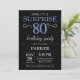 Überraschung 80. Geburtstag Einladung mit Schwarz und Blau Glitzer Hintergrund. Tafel. Erwachsener Geburtstag. Männer oder Frauen laden ein.