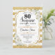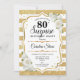Überraschung 80. Geburtstag Einladung. Weibliches Design mit Imitaten Glitzer Gold. Features Streifen, weiße Rosen, Skript-Schriftart und Konfetti. Ideal für eine elegante Geburtstagsfeier. Kann personalisiert sein, jedes Alter zu zeigen. Nachricht, wenn Sie weitere Anpassungen benötigen.
