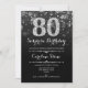 Überraschung 80. Geburtstag Einladung. Elegantes Schwarz-weißes Design mit Imitaten Glitzer Silber. Erwachsener Geburtstag. Mit Diamanten und Drehbuch Schriftart. Männer oder Frauen laden ein. Ideal für eine stilvolle Geburtstagsfeier. Nachricht, wenn Sie weitere Anpassungen benötigen.