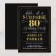 Überraschung 80. Geburtstagsparty Einladung. Einfaches Design in Schwarz-Gold und Weiß. Enthält einen eleganten Script-Schriftart. Überraschende Feier für Mann oder Frau. Kann in jedem Alter angepasst werden!
