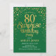Überraschung 80. Geburtstagsparty - Green & Gold Einladung