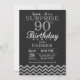 Überraschung 90. Geburtstag Einladung mit Silver Glitzer Zickzack. Tafel. Schwarz-Silber-Glitzer. Erwachsener zum Geburtstag. Mann oder Frau laden ein. Für weitere Anpassungen klicken Sie bitte auf die Schaltfläche "Anpassen" und verwenden Sie unser Designwerkzeug, um diese Vorlage zu ändern.