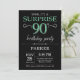 Überraschung 90. Geburtstag Einladung mit Schwarz und Grün Glitzer Hintergrund. Tafel. Erwachsener Geburtstag. Männer oder Frauen laden ein. Jedes Alter.