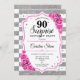Überraschung 90. Geburtstag - Silberweißes Rosa Einladung
