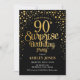 Überraschung 90. Geburtstagsparty - Black & Gold Einladung