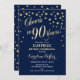 Überraschung 90. Geburtstagsparty - Gold Navy Einladung