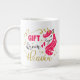 Jumbo Einige Tage, eine normale Tasse Joe wird einfach nicht funktionieren. Wenn du etwas mehr Koffein brauchst, dann hole dir die extra große Kaffeetasse von Zazzle. In sie passen 590 ml. Perfekt für Suppe, Müsli, Eis oder auch Chili! Diese riesige Tasse hat einen C-förmigen Griff für komfortables Trinken. Abmessungen: Höhe: 4,5" Durchmesser: 3,9" Fassungsvermögen: 20 Unzen Mikrowelle und Geschirrspülersicherheit Strong, Keramik construction erfüllt oder übertrifft die FDA-Anforderungen für Lebensmittel- und Getränkeservice Designer Tipp: Um den hochwertigen Druck zu gewährleisten, beachten Sie bitte, dass der anpassbare Designbereich dieses Produkts 4" hoch x 10,5" breit ist