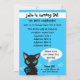 Eine überraschende Party Einladung mit MuffinPuffARTS! Neueste Cartoon-Figur Elliot, eine ziemlich gruselige schwarze Katze. Hier hängt er von der Spitze der Einladungen und streuen überall bunte Konfetti. Auf der Rückseite sitzt er auf einem blauen Geschenk und drängt auf die Aussicht zu hetzen, um nicht zu verderben das Geheimnis. Der gesamte Text ist anpassbar. Illustrationen von Jojo Kneebone - Aka MuffinPuffART!