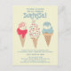 Neu im Sommer 2024. Unsere Einladung "Ice Cream, You Scream We All Scream Surprise!" Postkarte. Drei Retro-Aquarelleiskäse mit patriotischem Rot, Weiß und Blau-Eis und Sprinklen stehen im Zentrum der Bühne über den Details Ihrer Geburtstagsparty.