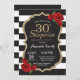 Überraschung Rote Rose 30. Geburtstag Einladung Gold Glitzer. Black and Gold Geburtstagsparty einladen. Gold Glitzer. Schwarze und weiße Streifen. Tafel. Printable Digital. Für weitere Anpassungen klicken Sie bitte auf die Schaltfläche "Anpassen" und verwenden Sie unser Designwerkzeug, um diese Vorlage zu ändern.
