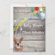Ein brauner und weißer Hund, überraschend aufgewachsene Ohren, wird von einer mit Blume gefüllten Dose gegen rustikale, verwitterte Bretter in dieser lustigen Einladung für eine Babydusche geduscht. "Überraschung!" befindet sich in einem hellgelben, leicht lesbaren Schriftart, der für ein normales, nicht überraschendes Party leicht zu löschen ist. Die Erholung der Karte beinhaltet auch einen kontrastreichen kursiven Schriftart. Diese Einladung ist leicht zu machen, denn Sie ersetzen Informationen über Ihre eigene Veranstaltung durch die Platzhalter.