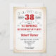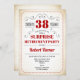 Überrasante Party Einladung für Männer oder Frauen im Ruhestand. Retro-Design in dunkelrot und weiß mit Vintagem cremigem Hintergrund. Features typografischer Script-Schriftart. Ideal für eine stilvolle Ruhestandsüberraschung.