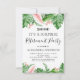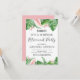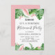 Grüne tropische Palmen und rot rosa Blume Wasserfarbe ... Überraschende Party Einladungen mit rosafarbenem Hintergrund, die eine wunderschöne und elegante Schrift-Typografie mit modernen botanisch-rot-rosa Blume und tropischem hawaiianischem Grün beinhalten.