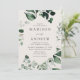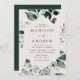 Elegante Einladungen für Hochzeiten, die in einem geometrischen Rahmen eingebettet sind, umgeben von Eukalyptus, Farne und anderen üppigen Grünpflanzen mit cremefarbenem Hintergrund. Die modernen botanischen Hochzeitseinladungen kehren zu einem soliden, dunkelgrünen Hintergrund zurück. Entworfen, um sich mit unserer Hochzeitskollektion "Abundant Greenery" abzustimmen.