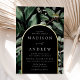 Elegante Einladungen für Hochzeiten, die Ihre Hochzeitsdetails inmitten eines gewölbten, schwarzen und goldenen Rahmen mit Eukalyptus, Farne und anderen üppigen Grünpflanzen enthalten. Die botanischen Botanischen Bogen Hochzeitseinladungen kehren zu einem soliden dunkelgrünen Hintergrund zurück. Entworfen, um sich mit unserer Hochzeitskollektion "Abundant Greenery" abzustimmen.