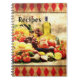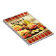 Digitales Kunstdesign mit einer Fülle von frischen Lebensmitteln und italienischen/mediterranen Koch-Zutaten auf einem gereizten roten harlequin Hintergrund.