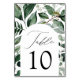Elegante, botanische Hochzeitskarten mit der Tischnummer in einem gewölbten Rahmen, umgeben von Eukalyptus, Farne und anderen üppigen Grünpflanzen. Personalisieren Sie die Nummer für jede Tischkarte und fügen Sie sie Ihrem Warenkorb hinzu. Entworfen, um sich mit unserer Hochzeitskollektion "Abundant Greenery" abzustimmen.