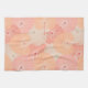 Ein überlappendes Design mit pastellfarbener Pfirsichfarbe und traditionellen chinesischen Ventilatoren.
