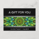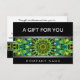Elegantes und modernes grünes Watching Over You mandala Design, wo Sie Ihren Firmennamen und "ein Geschenk für Sie Text" auf der Vorderseite anpassen können. Auf der Rückseite befindet sich die gleiche Mandala, die allerdings etwas kleiner ist und viel Platz bietet, um den Text an Ihre Geschenkkarte anzupassen.
