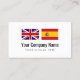 Übersetzer-Visitenkarteschablone der Übersetzungsdienste spanische englische. Kundenspezifischer Besuchskartenentwurf mit britischem Gewerkschafts-Jack und spanischem Flaggenfirmenlogo. Einfache Karten mit moderner Typografie für Namen und Slogan. Berufliche Karten für die Übersetzungsdienste, Sprachlehrer, Bildung, Reiseindustrie, Produkte, das Visum, das Dienstleistungen behandeln, die Übersetzerdienstleistungen, internationales Gesetz, Reisebüro, Transport, Import-export, Sprache, die Firma übersetzen, Geschäftsgeschäfte, den Freiberufler etc., der in den verschiedenen Größen verfügbar sind, Papierstärke und runde Ecke schnitten Form heraus. Auch verfügbar für andere Sprachen. Flagge von Spanien und von England Großbritannien Großbritannien. Laden Sie Ihre eigenen Landesflaggen beliebig. Erhalten Sie kreativere Ideen und freie Inspiration in unserem einzigartigen Geschäft.
