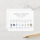 Dieses Programm für den Hochzeitstag beinhaltet Braut & Bräutigam, Ringe, Kamera, Cocktailglas, Teller, Musiknoten, Kuchen, Bouquet und Retro-Auto. Klicken Sie auf die SCHALTFLÄCHE BLAUE DESIGN TOOL, um eine erweiterte Anpassung dieses Designs zu erhalten.