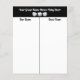 Billig Schwarz-weiße Bunco Dice Table Tallsheets für Ihre Bunco Gruppe. Doppelseitig. Modernes Aussehen mit drei glücklichen weißen Würfeln alle bereit zum Rollen!