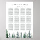 Die Gästekarte für Hochzeitsgäste passt zu unserer Kollektion Holz Grove mit einer Reihe von Winterkiefern in Schattierungen von Wald und Jäger Grün.
