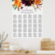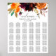 Rustikales Blumenstempelposter mit einem blumengeschmückten Blumenstrauß mit warmen und erdigen Farbtönen gebrannter Orange, Terrakotta und tiefbordeauxfarbener Farbe sowie einigen Grünpflanzen. Unten ist "willkommen" zusammen mit Ihren Namen und Hochzeitsdatum. Dieses elegante Seating Chart mit den reichen Herbsttönen eignet sich hervorragend für eine gehobene thematische Hochzeit im Herbst und kann nach Tabelle oder alphabetisch angepasst werden.
