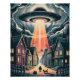 UFO Abduction Night Street Illustration Poster