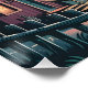 This dramatic illustration depicts a UFO hovering above a quiet suburban street at dusk, casting a vivid orange-yellow beam over houses and a lone figure observing the spectacle. Rich, moody colors of deep blues, purples, and grays contrast with the glowing beam, creating a retro-inspired, surreal atmosphere. Bold outlines and stylized details make this artwork perfect for fans of sci-fi, mysterious phenomena, and cinematic night scenes.