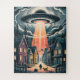 UFO Abduction Night Street Illustration Puzzle