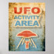 UFO-Aktivitätsbereich Ein lustiges altmodisches Poster mit lustigen UFO-Zitat-Außerirdischen-Attacke-Bereich 51 im Retro-Stil, lustiges Poster, Geek Art.
