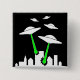 ANKOMMEND! UFO-alien-Angriffsknopf zeigt eine Flotte Außerirdischen in ihren Fliegen Saucer UFO an, die eine Stadt mit grünen Laserstrahlwaffen in Angriff nehmen. Ein sicherer Schlag mit jedermann in ScifI, in Außerirdischen, in UFO oder in außerirdisches Leben. Fertigen Sie dieses Einzelteil besonders an, indem Sie jeden möglichen Namen oder Sprichwort addieren, um zu machen aus diesem Weltpersonalisierten Geschenk heraus!